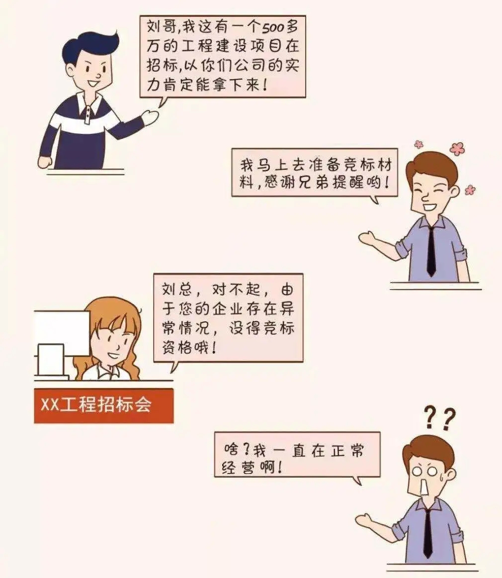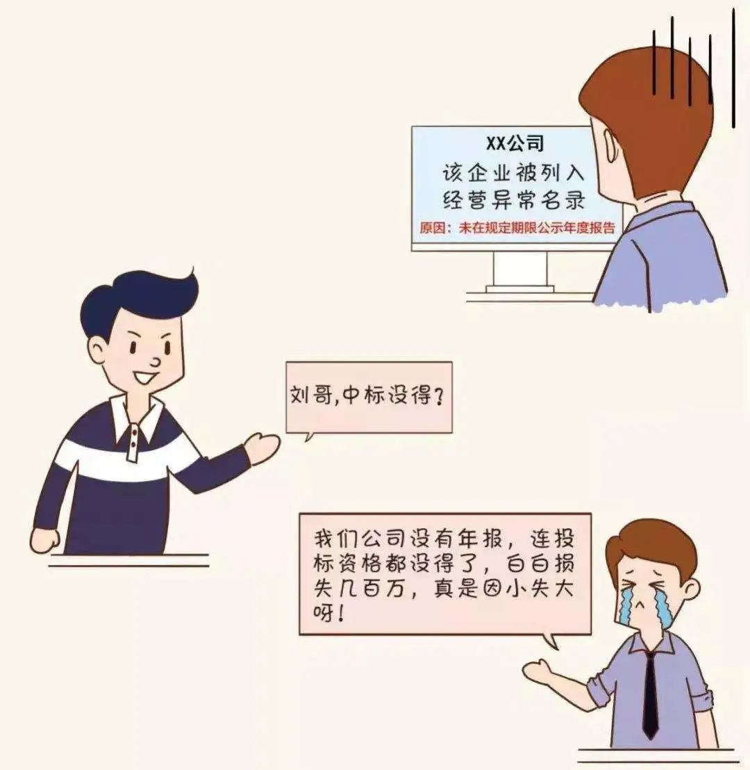 僅剩 7天 02企業合作信用受疑 現在是信用社會,信用對于人和企業來說都至關重要,大家都喜歡和有信用的人交往、合作。 被列入經營異常名錄,你看看誰還找你合作! 03經營活動受限 經營異常名錄信息現在也是 銀行等金融機構貸款、擔保等金融活動的 參考依據 老板 你好,我去年年報忘記報,現在被列入經營異常名錄,本來想著在阿里巴巴注冊一個網店,在網上做點小生意,結果被告知因為企業是經營異常名錄,注冊不了,這可怎么辦呀! 你好,首先應在國家企業信用信息公示系統補報年報,然后再準備好相關材料去當地市場監管部門申請移出哦。 小編 老板 好的,萬萬沒想到沒報年報的后果竟然這么嚴重,嚴重影響了我的經營活動,我真是后悔莫及。 是的,企業被列入經營異常名錄,那就有了信用污點,必須高度重視哦!對了,2019年度的年報馬上也要截止啦,請及時申報哦。 小編 老板 2019年度的年報我們公司馬上準備申報了,經過這次,以后一定不會忘了及時年報! 建議您盡早進行年報,避免因月底網站擁堵或企業自身數據方面準備不充分造成年報延遲。 小編 04列入嚴重違法企業名單 最最最嚴重的后果來啦! 列入經營異常名錄三年還沒有履行信息公示義務的企業,將被列入嚴重違法失信企業名單 企業五年內不能申請移出嚴重違法失信名單,法定代表人、負責人也將受到牽連,三年內不得擔任其他企業的法定代表人、負責人! 企業一站式服務平臺 工商注冊、財稅代賬、審計評估、稅務籌劃、商標專利、資質審批、人才獵頭、人才報名、金融保險、信用評級、法務咨詢、項目申報 公司網站:m.hv15.cn 聯系方式:400-0551-976 合肥總部:安徽省合肥市南一環與馬鞍山路交口恒興廣場A座24樓 分部:合肥市行政服務中心一樓“萬業公司代理窗口”(工商局窗口正對面) 分部:合肥市瑤海區行政服務中心一樓“萬業公司代理窗口”(工商局窗口正對面)