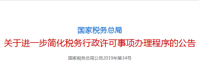 稅務總局發文進一步簡化稅務行政許可事項辦理程序,12月1日起施行(2019-10-23)