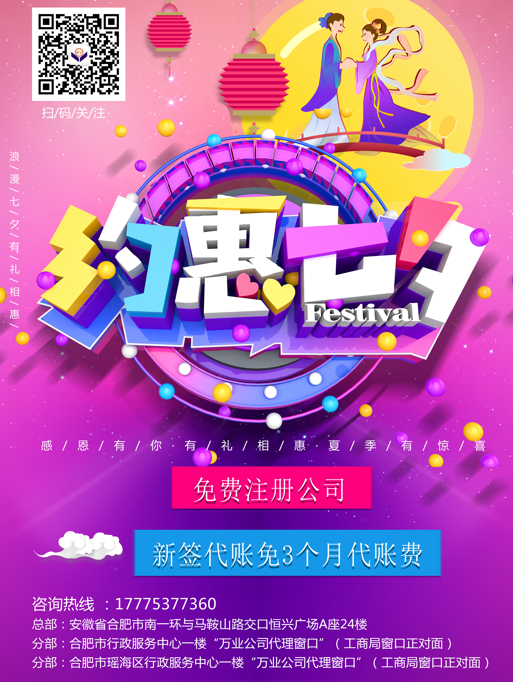 一大波送禮高潮正在趕來 01 免費注冊公司 02 新簽代賬免3個月代賬費 如此優惠的活動還不趕緊行動起來! 選擇萬業幫您輕松創業,省心、省力、省時、贏在起跑線,成功快一步!同時簽約成功者還可以免費介紹男女朋友喔