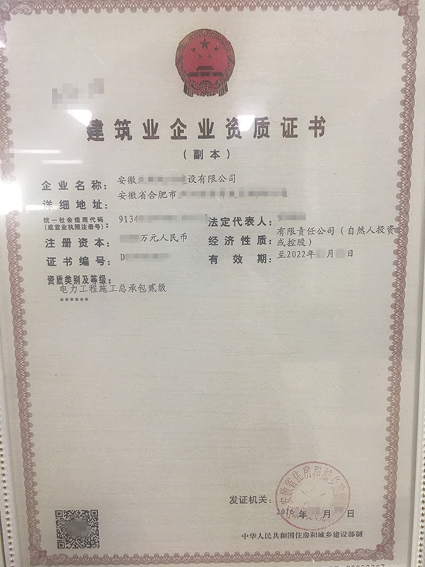 級別:電力工程施工總承包二級