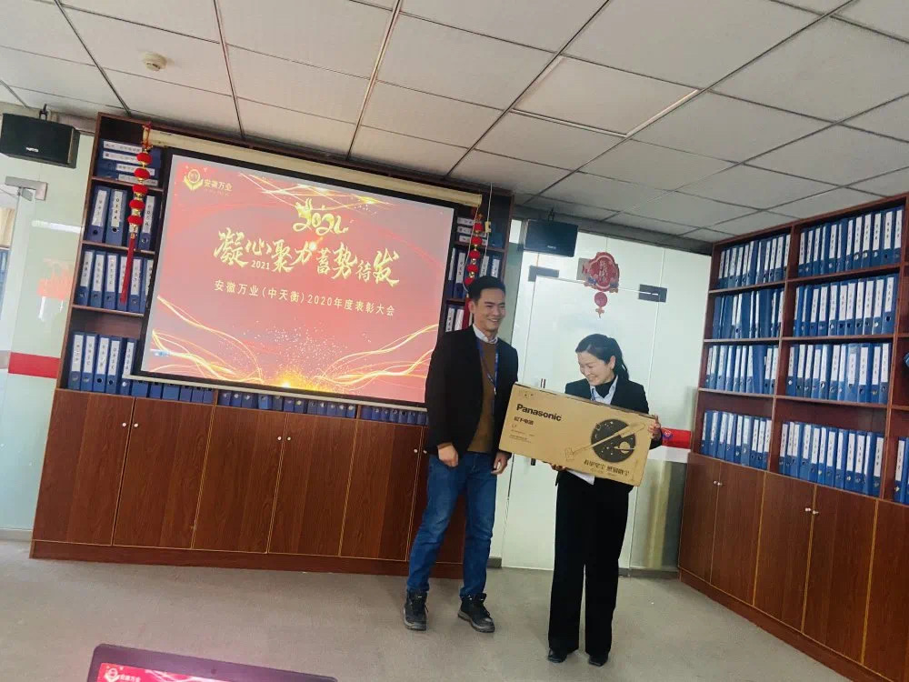 2月8號(hào),安徽萬業(yè)(中天衡)在公司舉辦了2021年會(huì)盛典,并取得圓滿成功。我司黃總,中天衡王所參加此次活動(dòng)并在會(huì)上致辭。 第一篇章 2020總結(jié)暨2021工作規(guī)劃 活動(dòng)開始時(shí),隨著黃總的登臺(tái)致辭,年會(huì)正式拉開了帷幕,首先黃總對(duì)公司2020年疫情之下逆勢而上取得的豐碩成果予以肯定,對(duì)長期以來支持萬業(yè)的合作伙伴、辛勤工作的全體員工,致以熱切的慰問和感謝并送上了新春的祝福。黃總表示公司將在2021年繼續(xù)加快企業(yè)多元化發(fā)展的步伐,為企業(yè)帶來新的發(fā)展契機(jī)。 隨后,各部門負(fù)責(zé)人開始了他們的年度匯報(bào),總結(jié)2020年自己部門的不足與成果,暢談2021各團(tuán)隊(duì)目標(biāo)業(yè)績,發(fā)展使命。 第二篇章 表彰大會(huì)與年終獎(jiǎng)?lì)C發(fā) 接著,迎來了最令人激動(dòng)人心的年終獎(jiǎng)?lì)C發(fā)環(huán)節(jié),在眾人期待的目光中,黃總向各位員工表現(xiàn)派發(fā)年終獎(jiǎng)勵(lì),這是企業(yè)對(duì)大家誠摯的祝福,也是對(duì)全體員工的工作成績的認(rèn)可。 第三篇章 抽獎(jiǎng) 年終獎(jiǎng)的頒發(fā),慷概激昂、振奮人心,全體員工歡聲笑語,為人們呈現(xiàn)出新春的活力與美好。同時(shí),中間穿插的抽獎(jiǎng)環(huán)節(jié)更是把年會(huì)晚宴的現(xiàn)場氣氛推向了最高潮,松下吸塵器、黛珂水乳套裝、三明治機(jī)等重磅好禮一一送出,激勵(lì)大家奮發(fā)向上。 律回春暉漸,萬象始更新