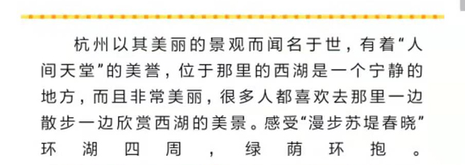 而聞名于世,有著“人間天堂”的美譽(yù),位于那里的西湖是一個(gè)寧?kù)o的地方,而且非常美麗,很多人都喜歡去那里一邊散步一邊欣賞西湖的美景。感受“漫步蘇堤春曉”環(huán)湖四周,綠蔭環(huán)抱。